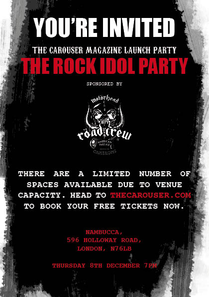 This is an invitation/poster that I have designed for The Carouser. The Carouser is a rock n roll drinking magazine so I tried to catch the anarchy and recklessness of the style in this leaflet. I would love to hear your thoughts!